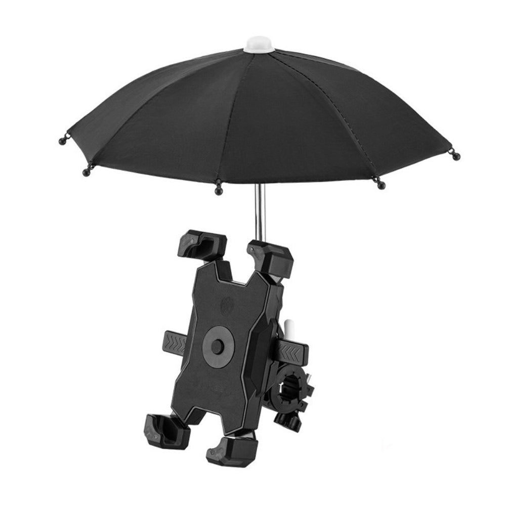 Universal rotatable bicycle phone mount with mini sunshade umbrella - Black / Handlebar