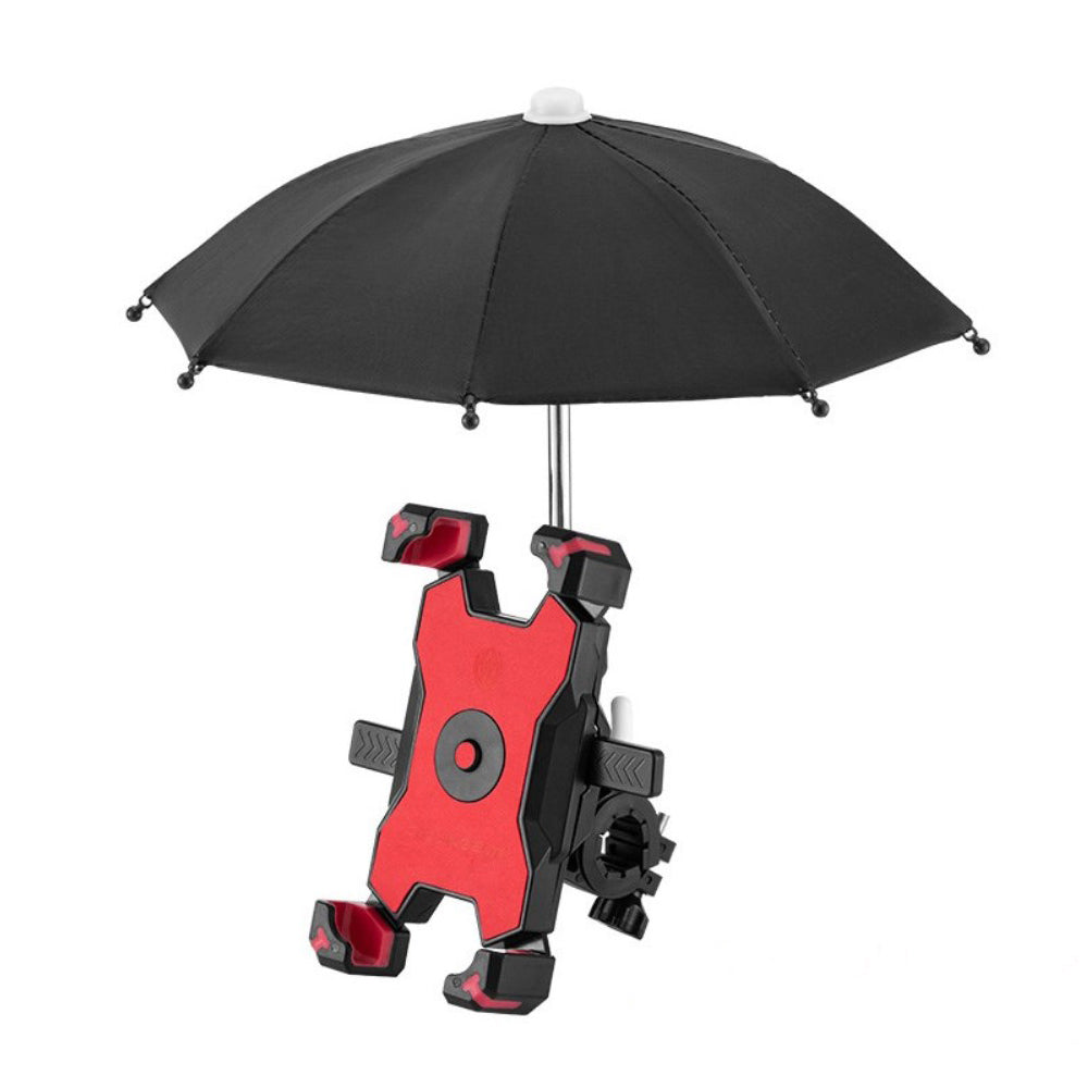 Universal rotatable bicycle phone mount with mini sunshade umbrella - Red / Handlebar