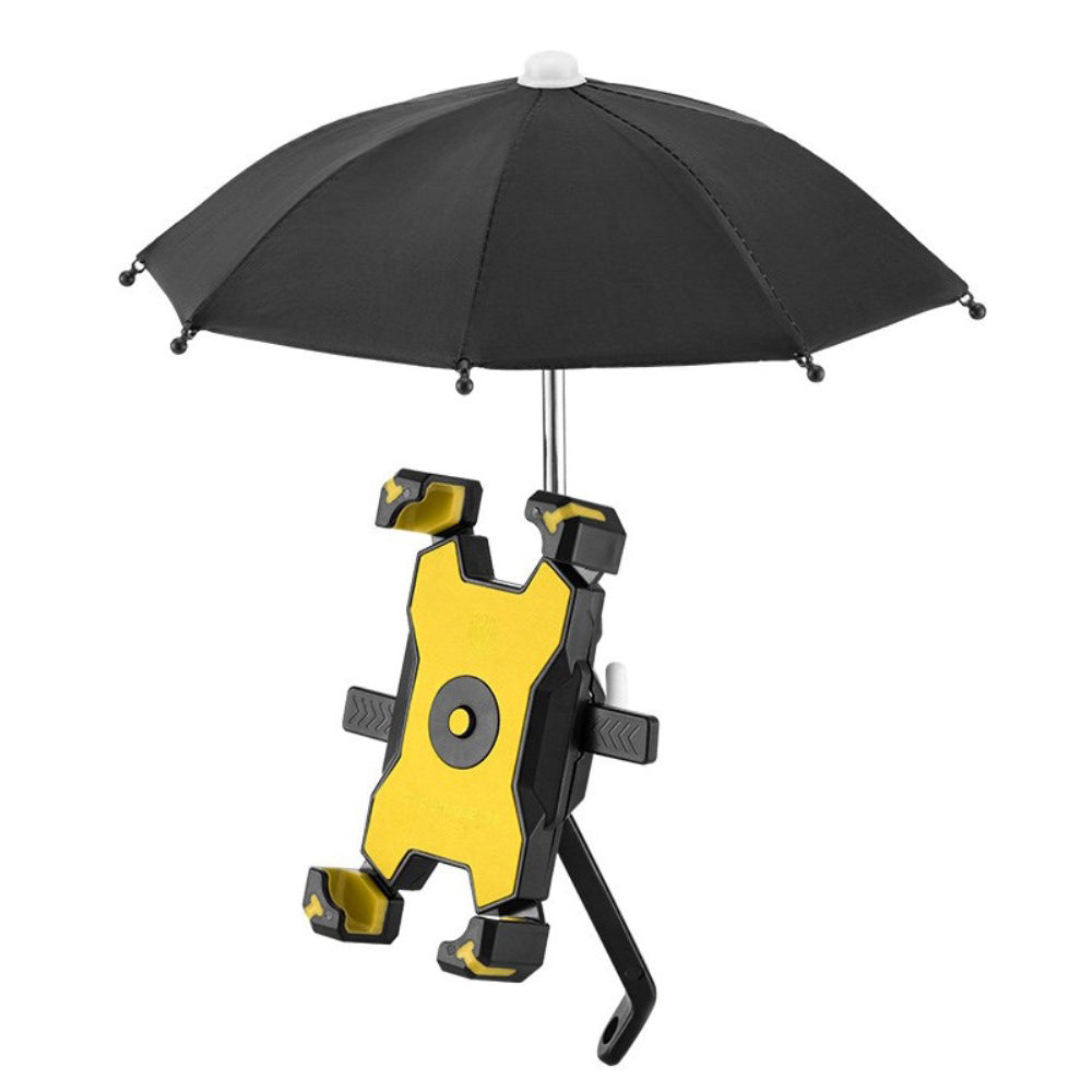 Universal rotatable bicycle phone mount with mini sunshade umbrella - Yellow / Handlebar