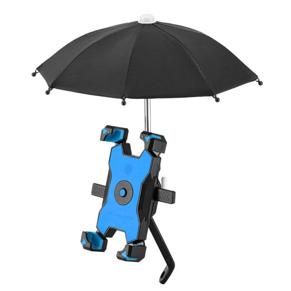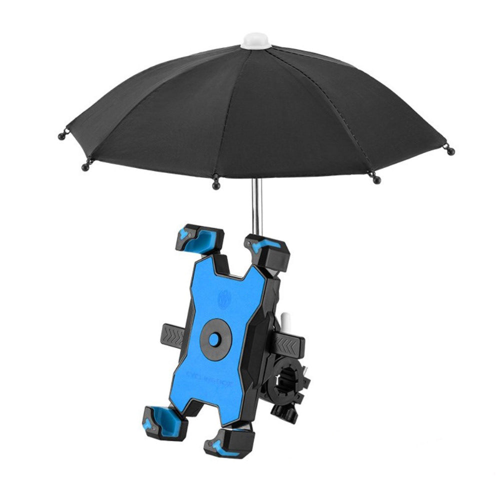 Universal rotatable bicycle phone mount with mini sunshade umbrella - Blue / Handlebar