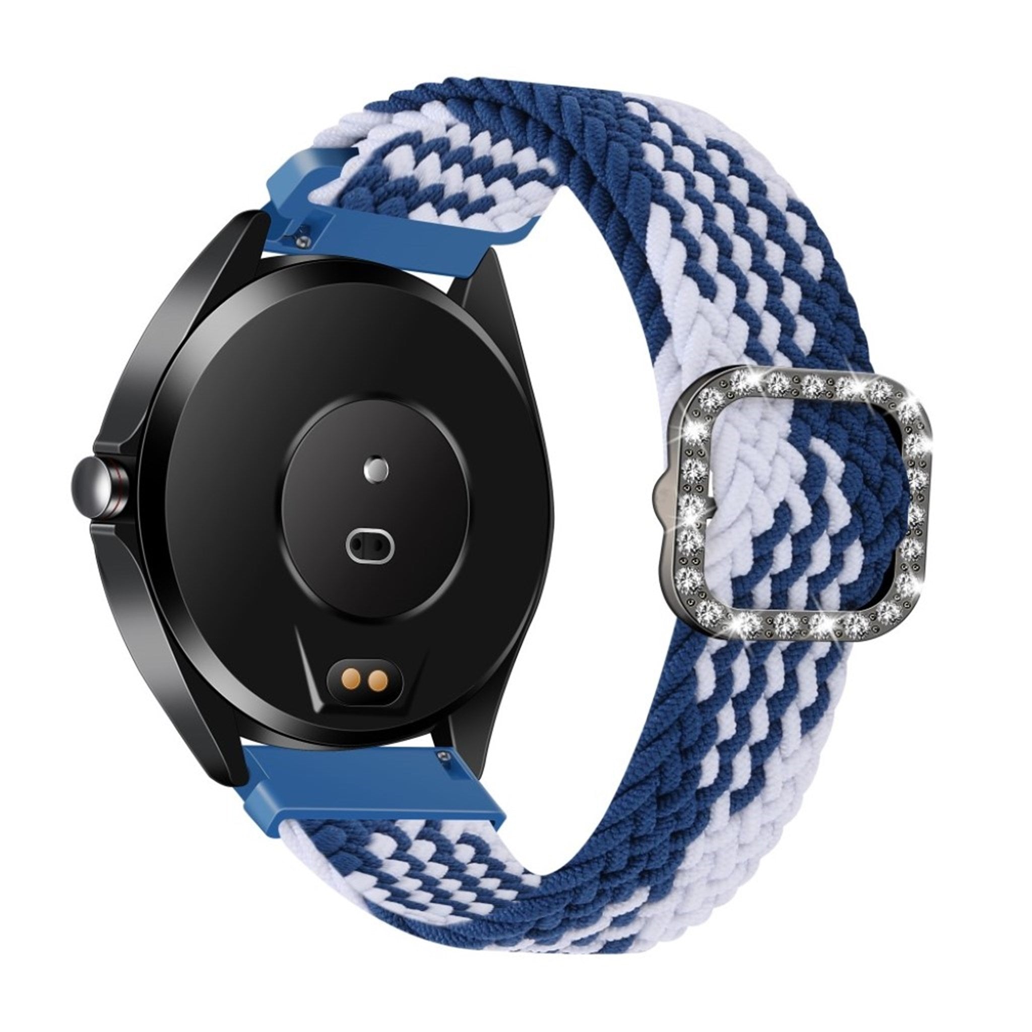22mm Universal nylon + rhinestone buckle watch strap - Blue and White
