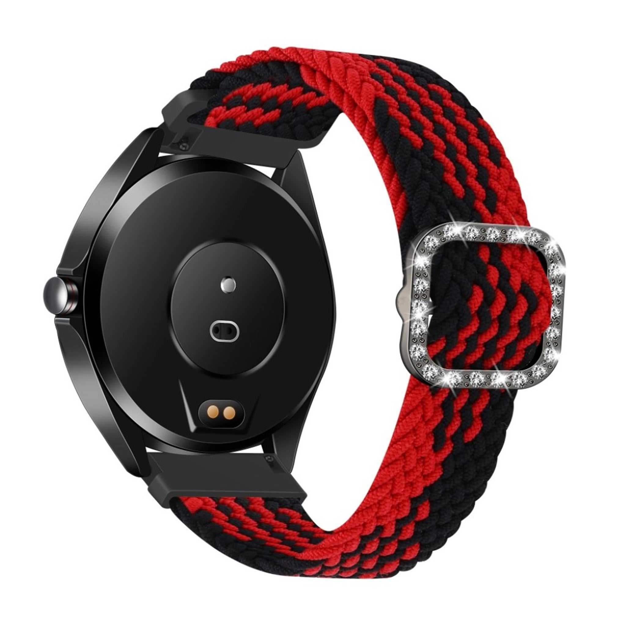 22mm Universal nylon + rhinestone buckle watch strap - Red between Black