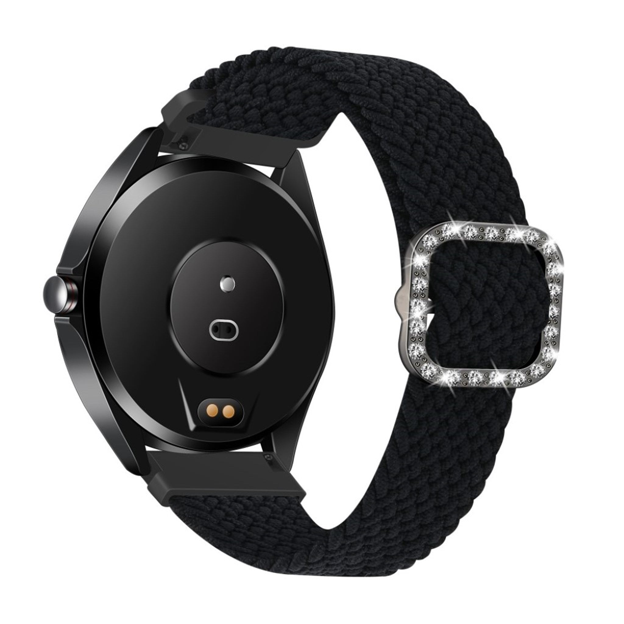 22mm Universal nylon + rhinestone buckle watch strap - Black Color