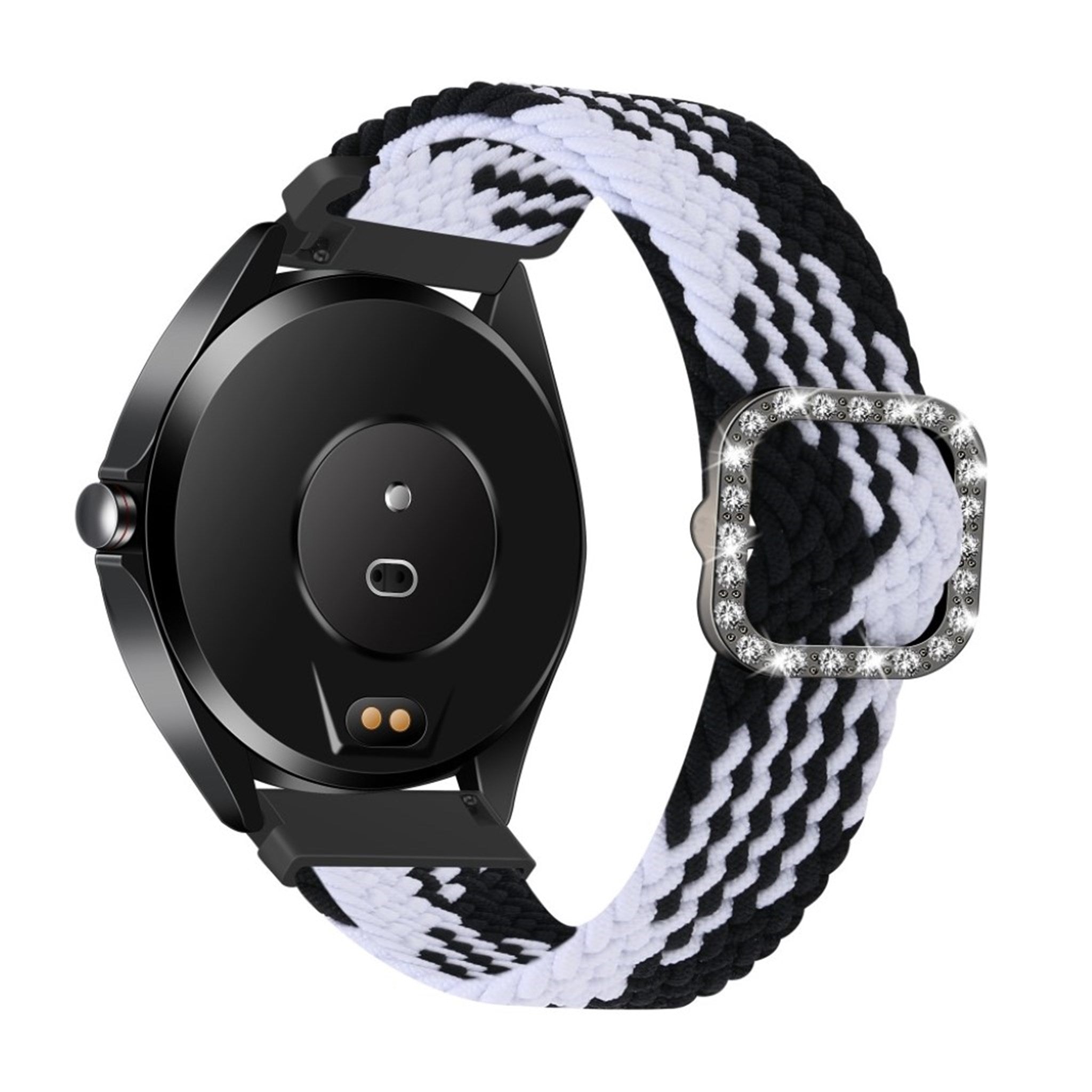 22mm Universal nylon + rhinestone buckle watch strap - Black and White