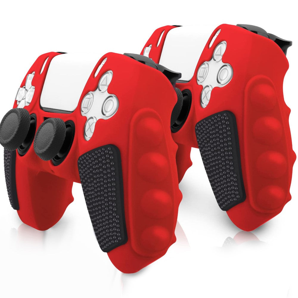 PS5 Controller Silicone Case with 8 Joy-Stick Caps Color Matching Protective Cover - Red
