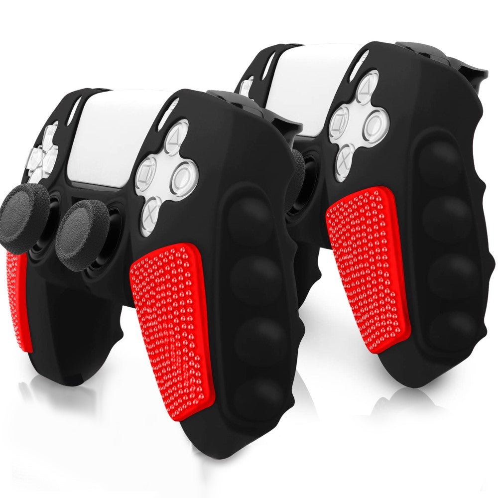 PS5 Controller Silicone Case Color Matching Protective Cover (Without Joy-Stick Caps) - Black / Red