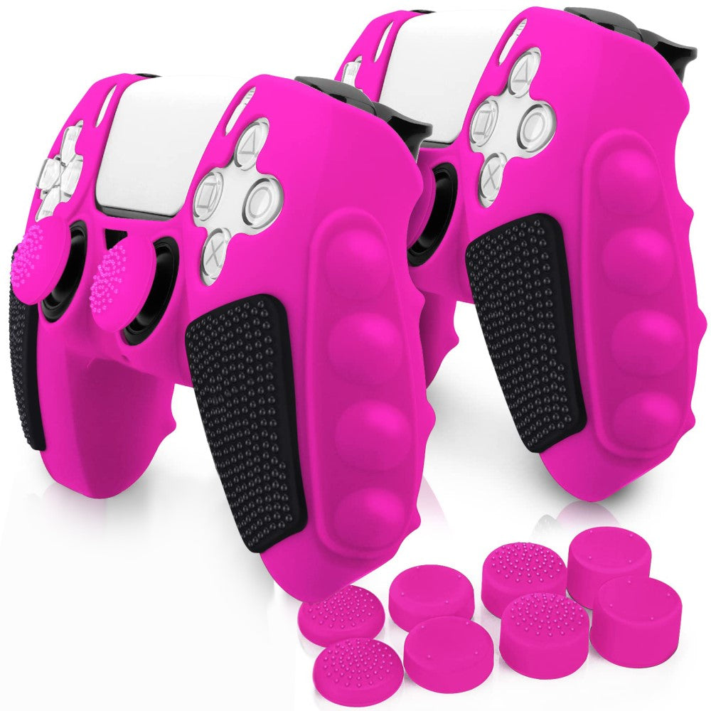 PS5 Controller Silicone Case with 8 Joy-Stick Caps Color Matching Protective Cover - Rose