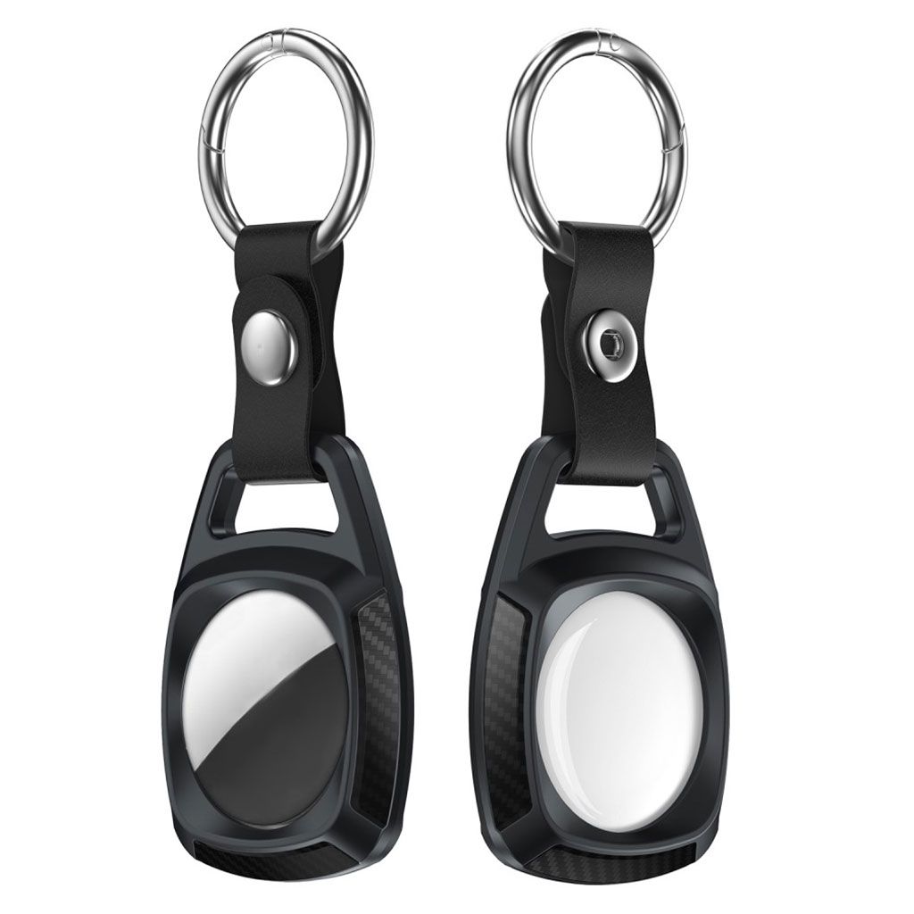 AirTags carbon fiber TPU cover with keychain - Black
