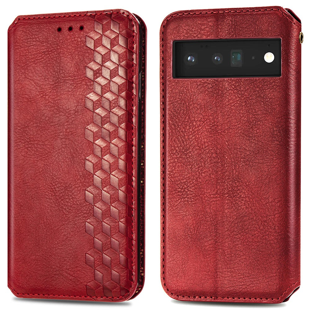 Leather case with a stylish rhombus imprint for Google Pixel 6 Pro - Red