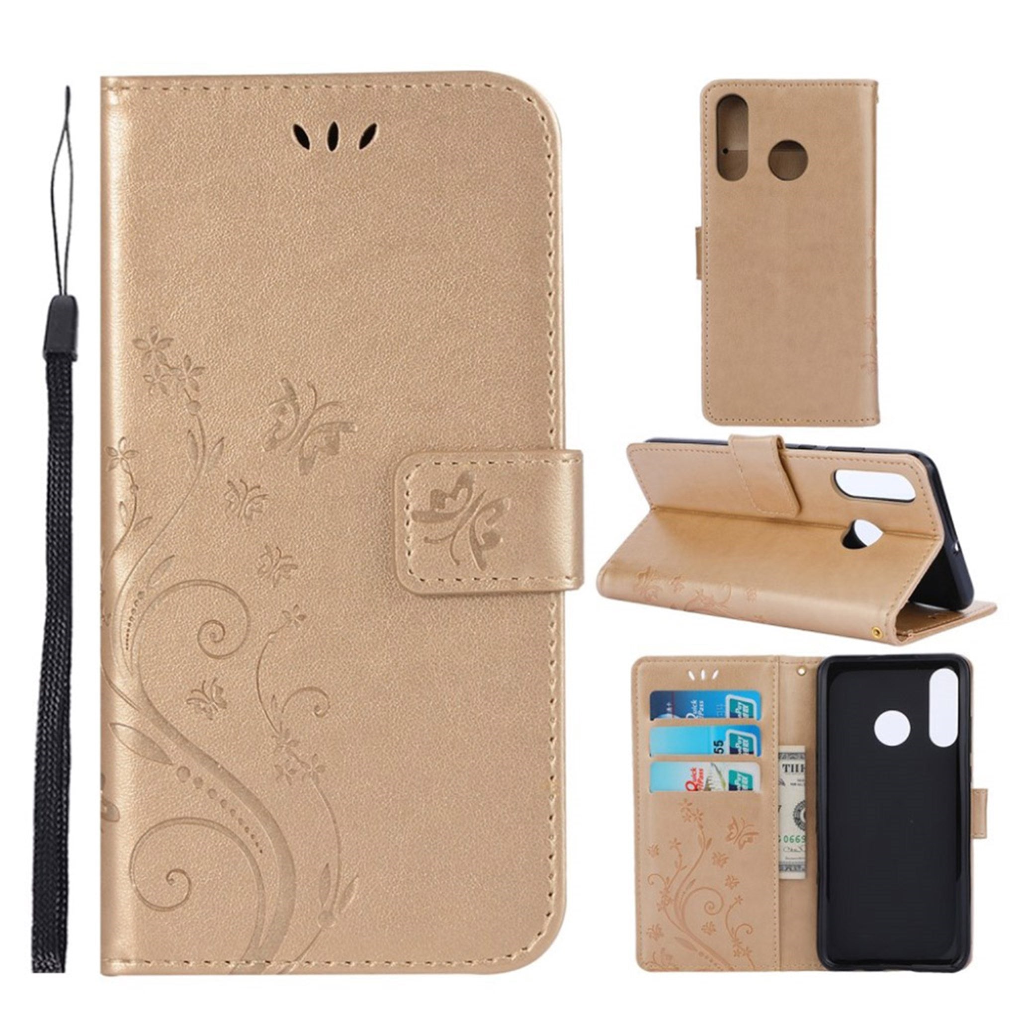 Huawei P30 Lite printti Perhonen Kukka nahkainen suojakotelo - Kulta