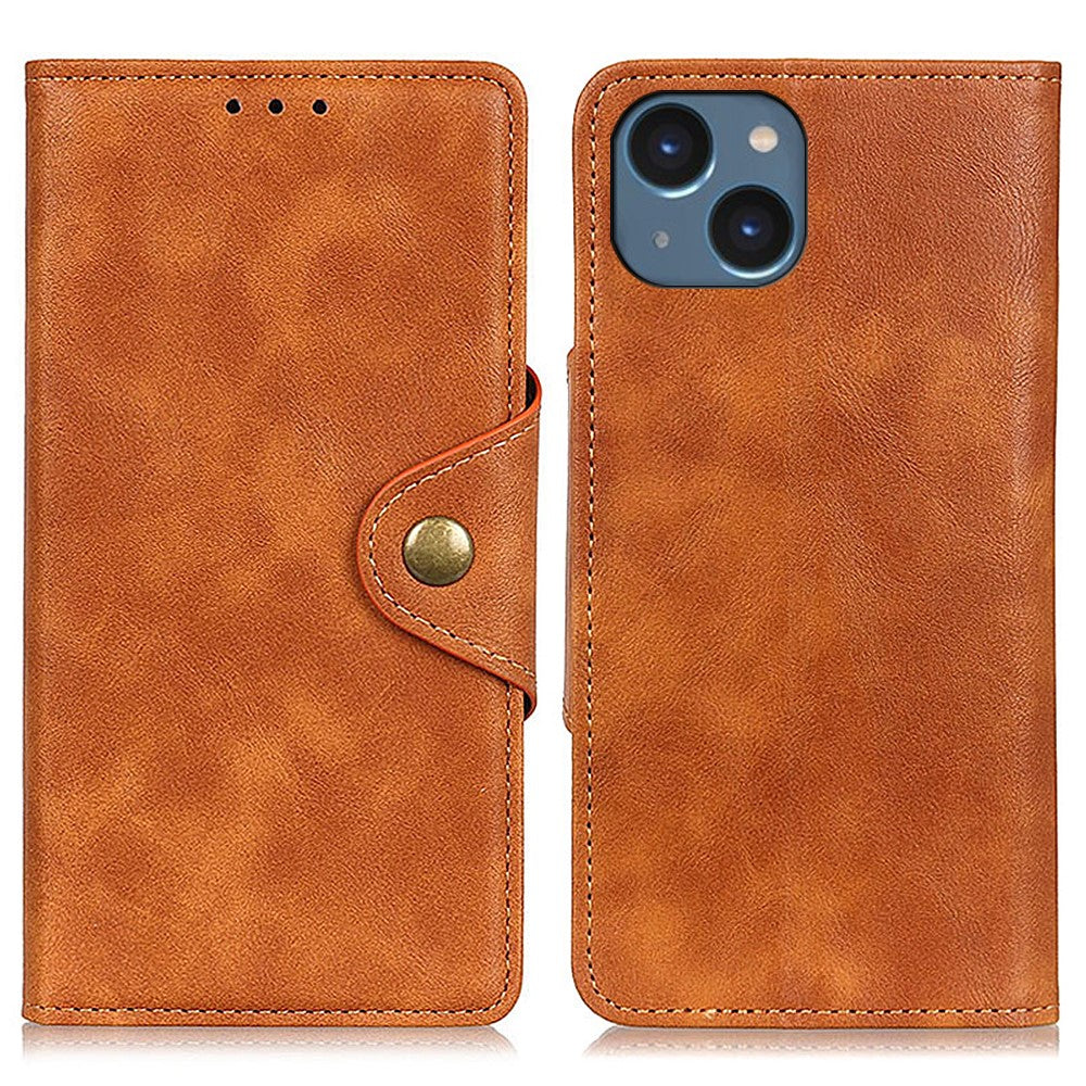 Wallet-style genuine leather flipcase for iPhone 15 Plus - Brown