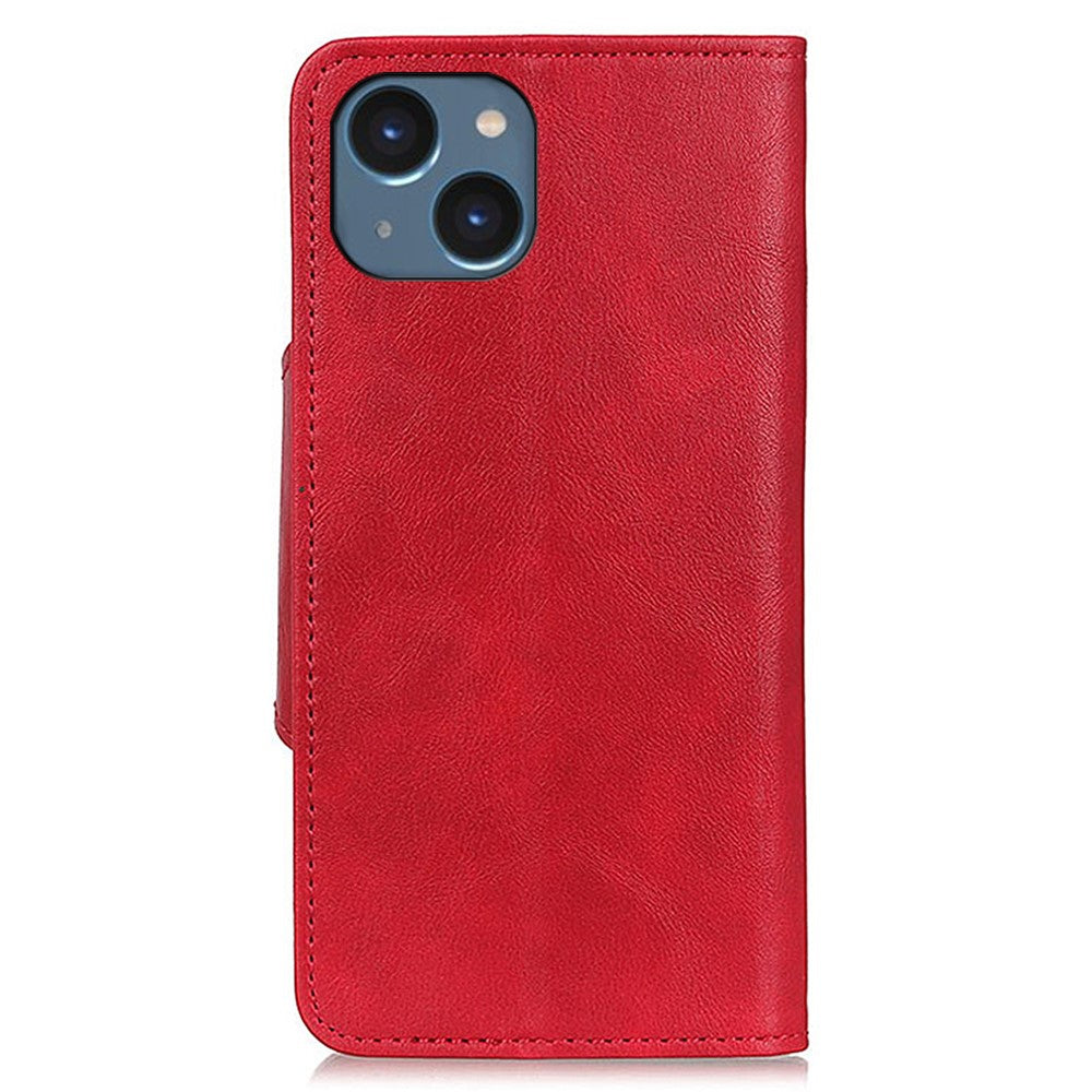 Wallet-style genuine leather flipcase for iPhone 15 Plus - Red
