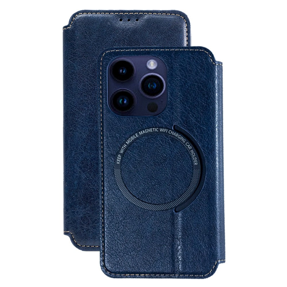 MagSafe Compatible Blue Matte Phone Cover with Wallet for iPhone 15 Plus
