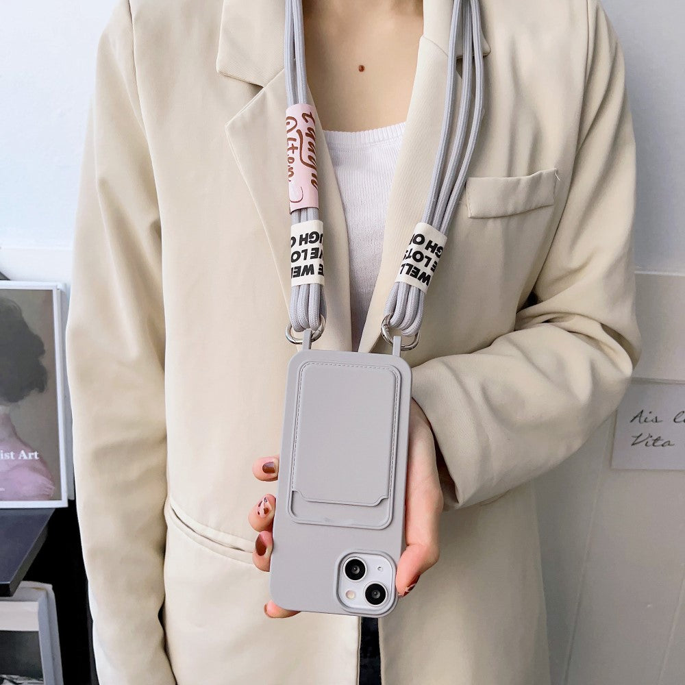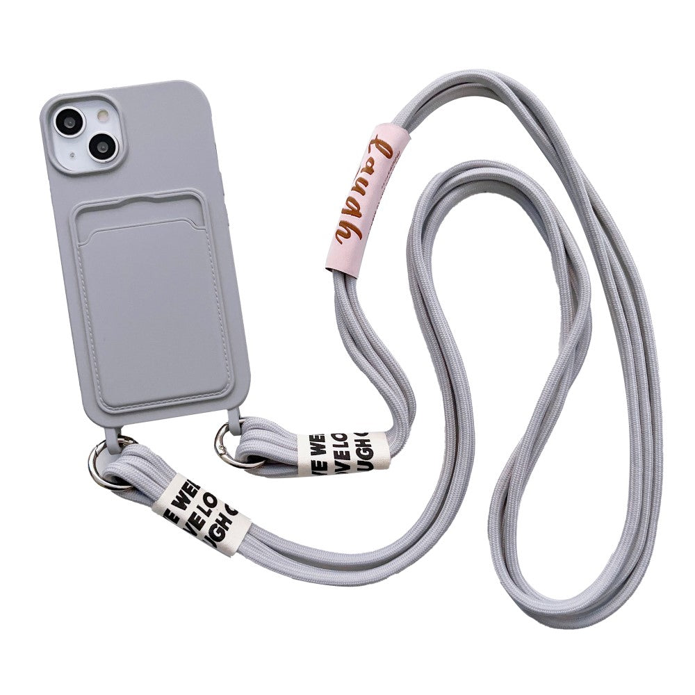 iPhone 15 Plus Liquid Silicone Card Slot Case with Strap - Grey