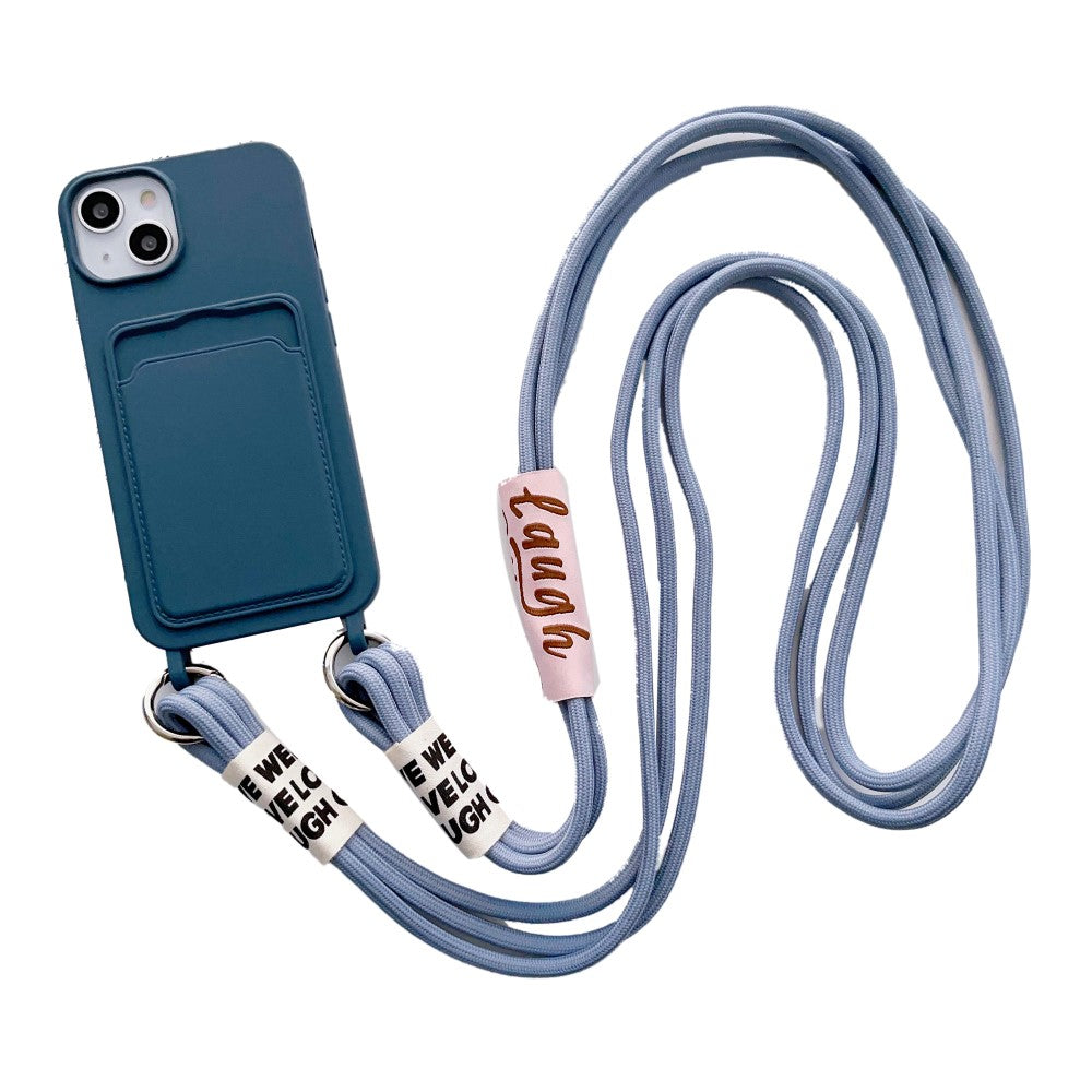 iPhone 15 Plus Liquid Silicone Card Slot Case with Strap - Navy Blue