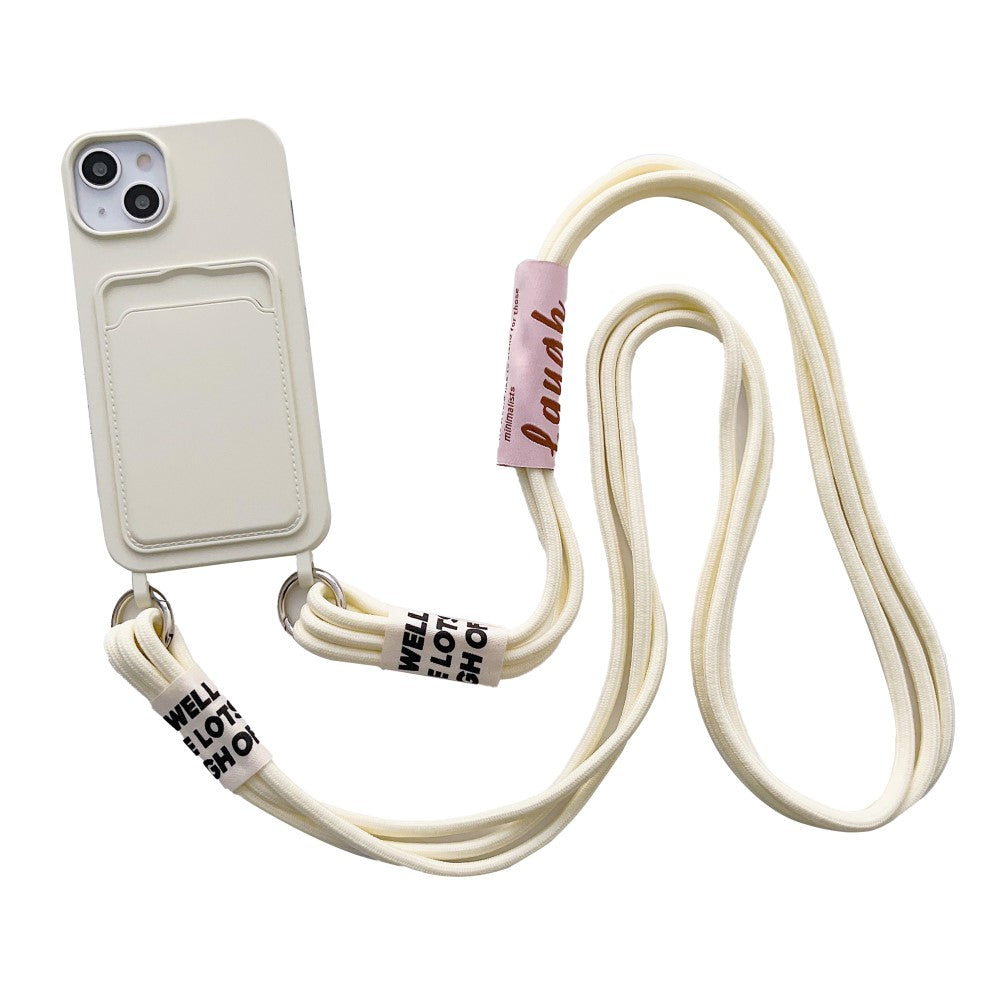 iPhone 15 Plus Liquid Silicone Card Slot Case with Strap - Beige