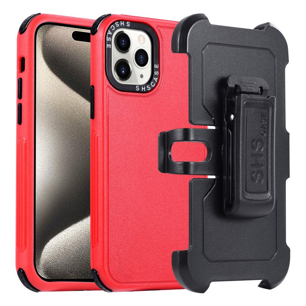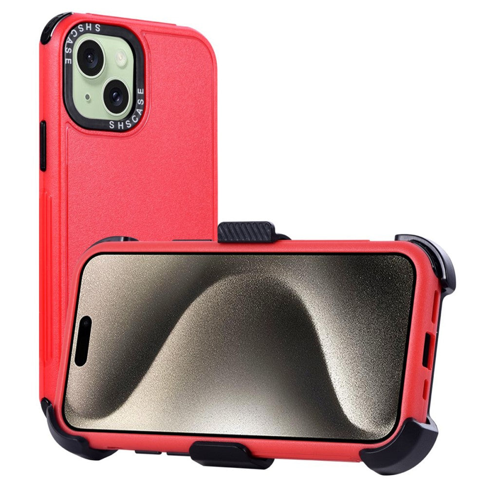 iPhone 15 Plus Dual Layer Belt Clip Holster Case - Red+Black