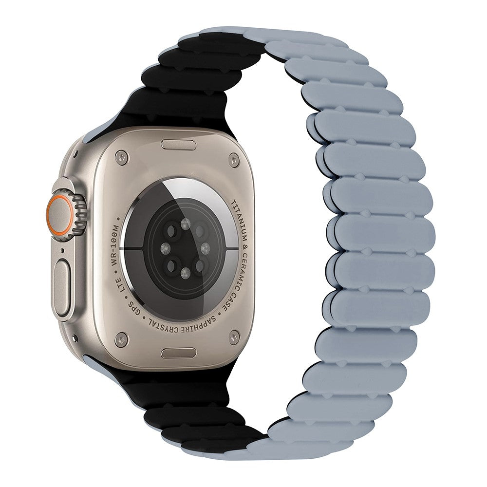 KALEBOL Magnetic Silicone Band Apple Watch Series 10 42mm Bamboo Joint Watch Strap - Grey + Black