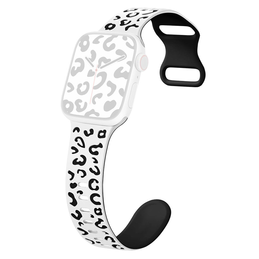 KALEBOL Leopard Silicone Band Apple Watch Series 10 42mm Dual Color Strap - White + Black