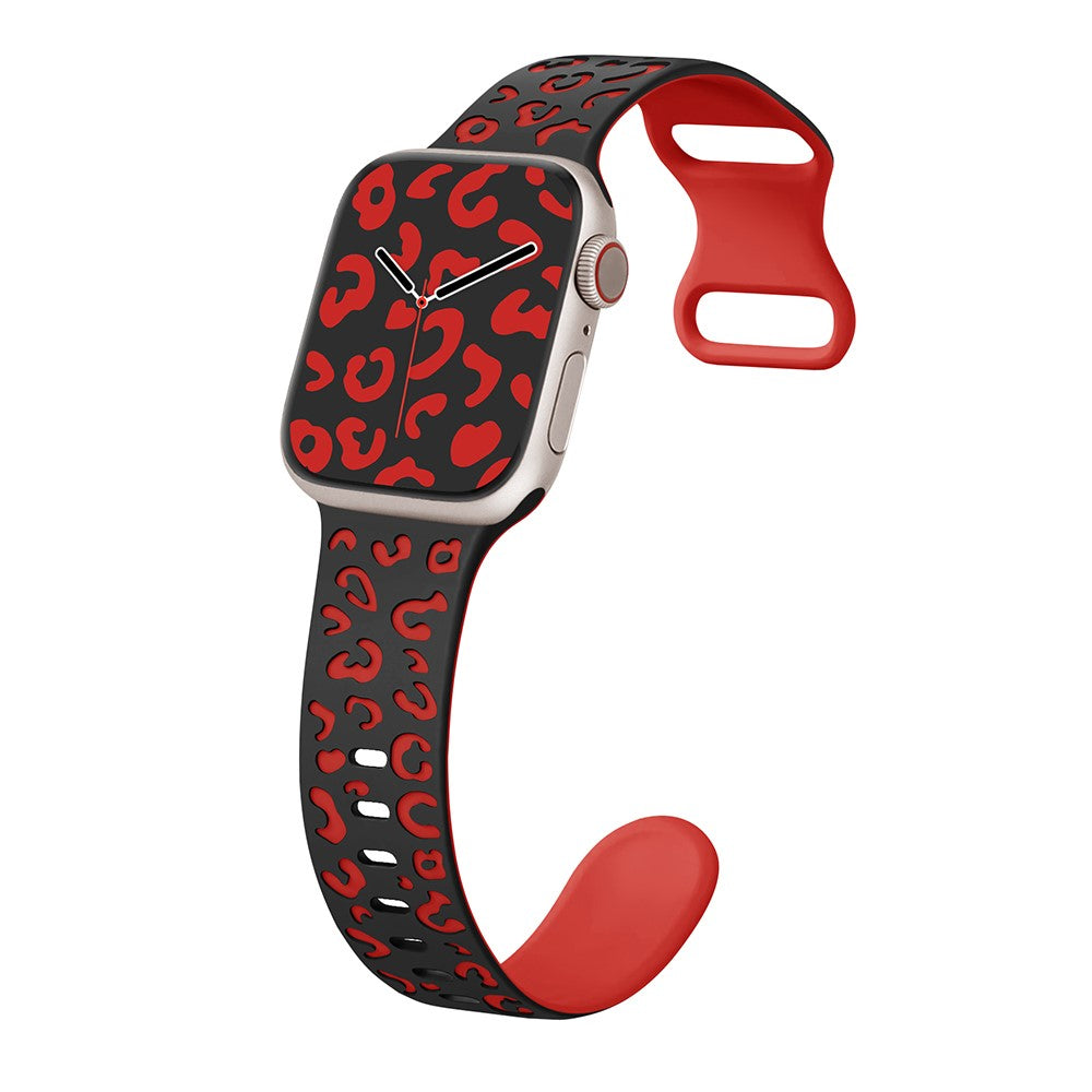 KALEBOL Leopard Silicone Band Apple Watch Series 10 42mm Dual Color Strap - Black + Red