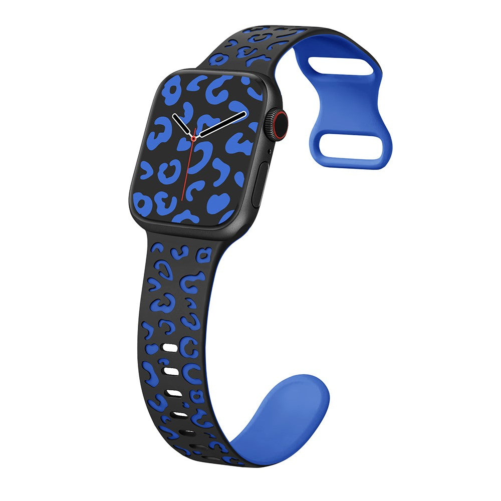 KALEBOL Leopard Silicone Band Apple Watch Series 10 42mm Dual Color Strap - Black + Blue