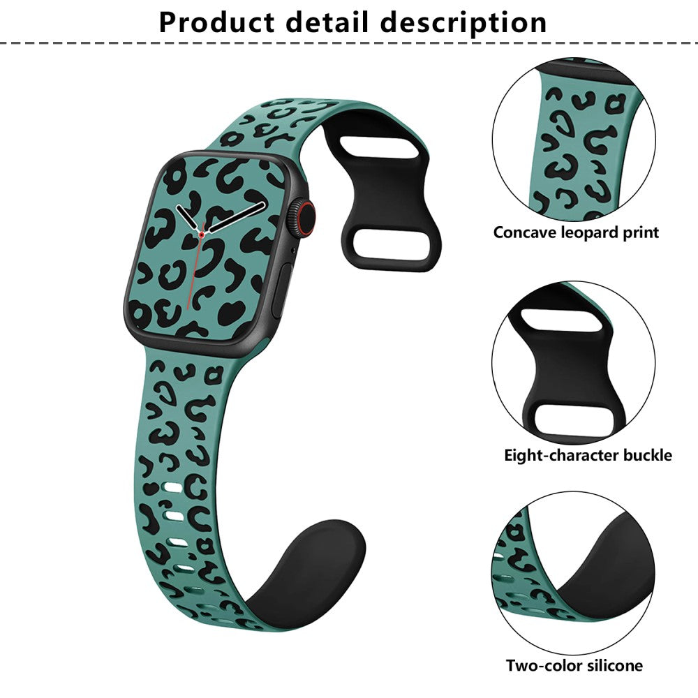 KALEBOL Leopard Silicone Band Apple Watch Series 10 42mm Dual Color Strap - Cactus Green + Black