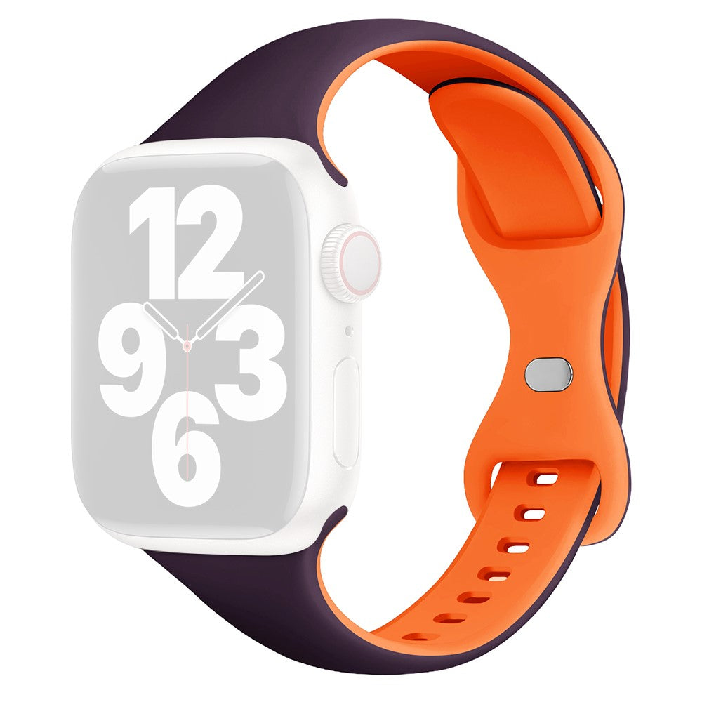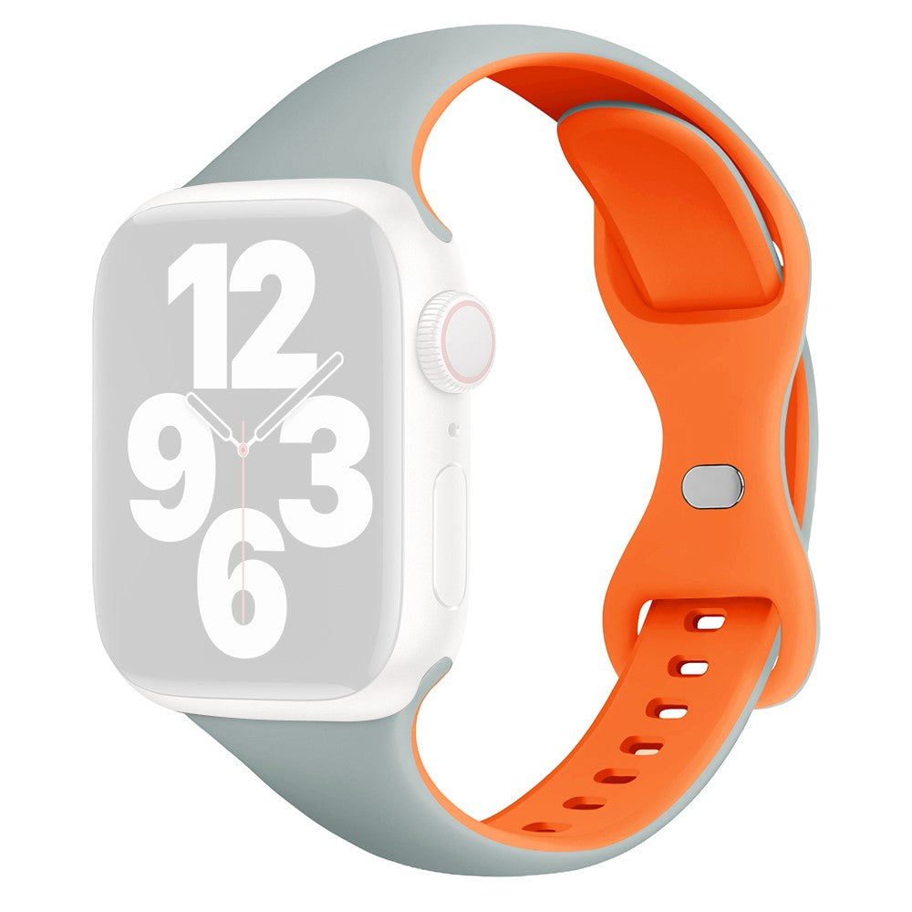 KALEBOL Silicone Strap Apple Watch Series 10 42mm Butterfly Buckle Watch Band - Starlight + Orange