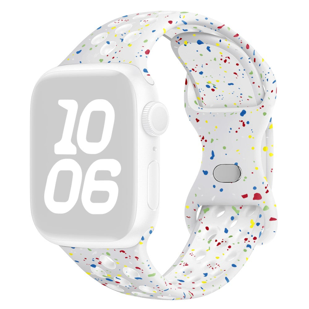 KALEBOL Color Dots Silicone Strap Apple Watch Series 10 42mm Butterfly Buckle Band - White