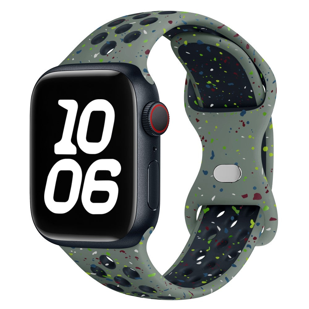 KALEBOL Color Dots Silicone Strap Apple Watch Series 10 42mm Butterfly Buckle Band - Army Green