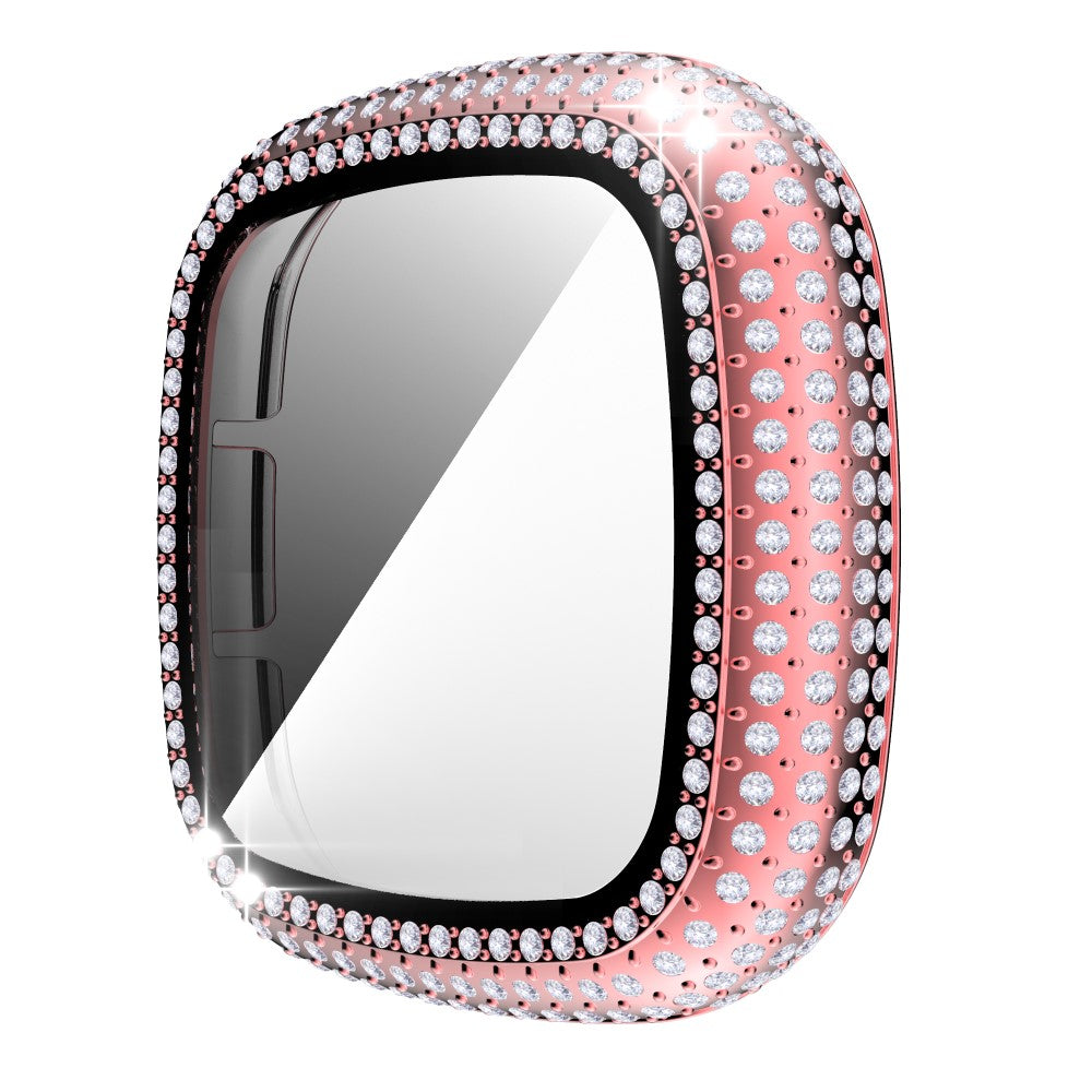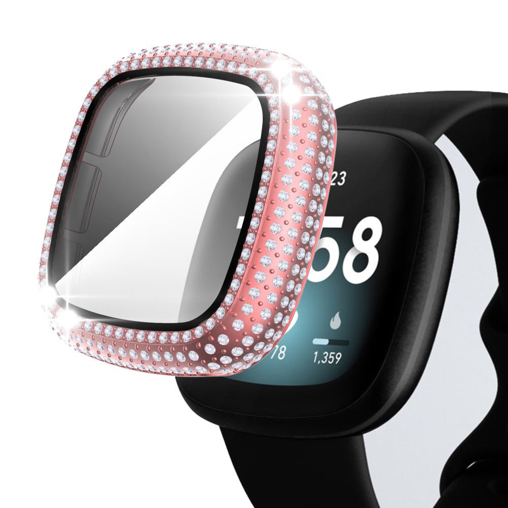 Stylish rhinestone décor cover with tempered glass for Fitbit Sense / Versa 3 - Pink