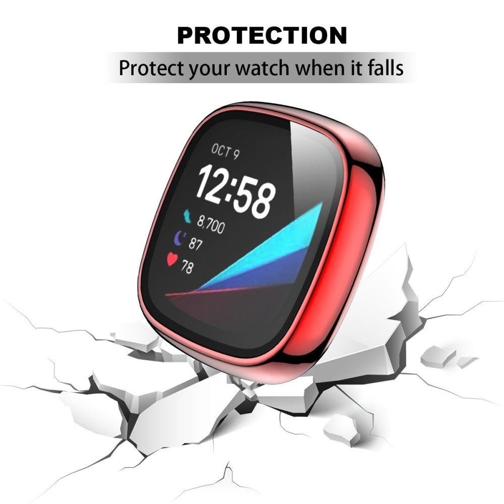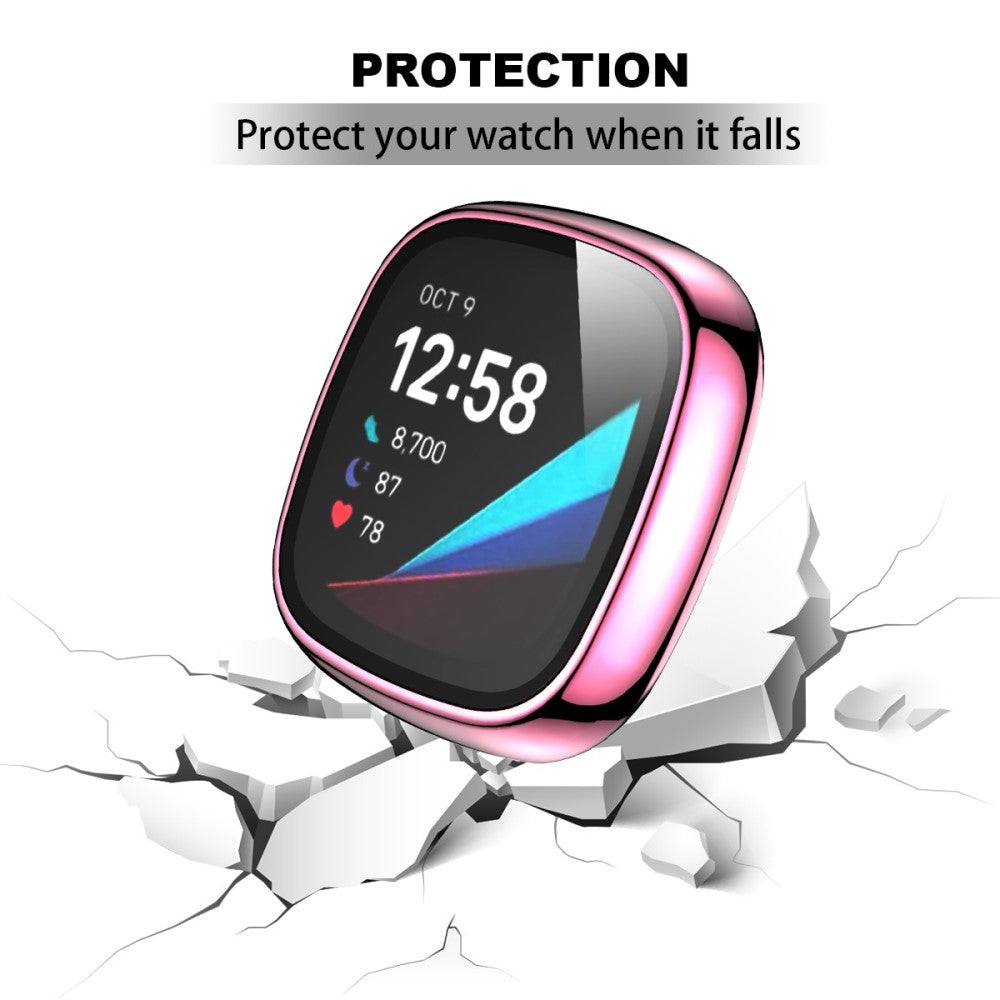 Fitbit Sense / Versa 3 electroplating cover with tempered glass - Pink