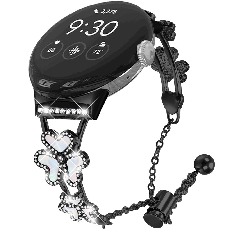 Google Pixel Watch 2 Watch Band Genuine Cow Leather Flower Decor Adjustable Strap - Black