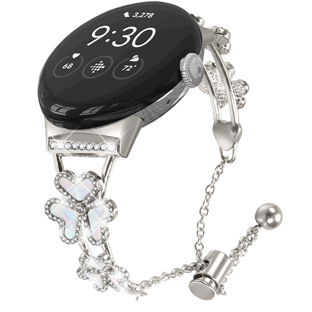 Google Pixel Watch 2 Watch Band Genuine Cow Leather Flower Decor Adjustable Strap - Pink