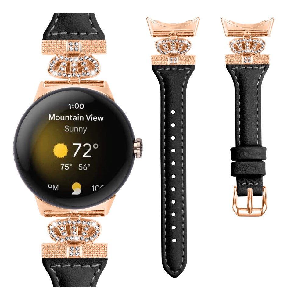 Google Pixel Watch / Watch 2 Black Buckle Watch Strap Crown Rhinestone Connector Wrist Band - Black