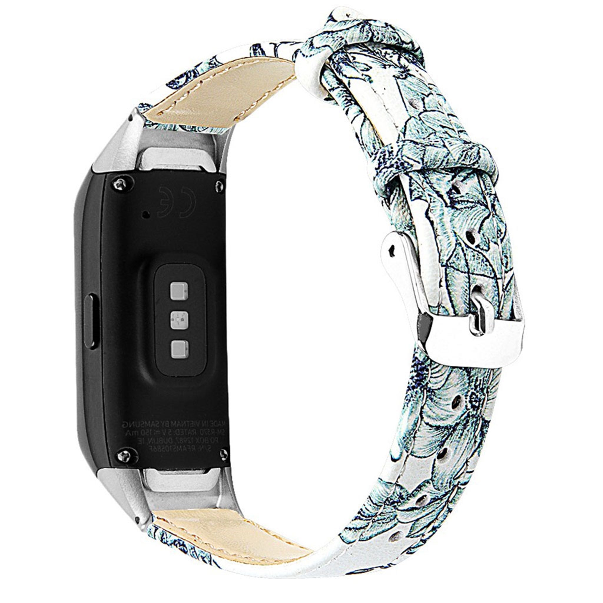 Samsung Galaxy Fit cowhide leather watch band - White / Leaf
