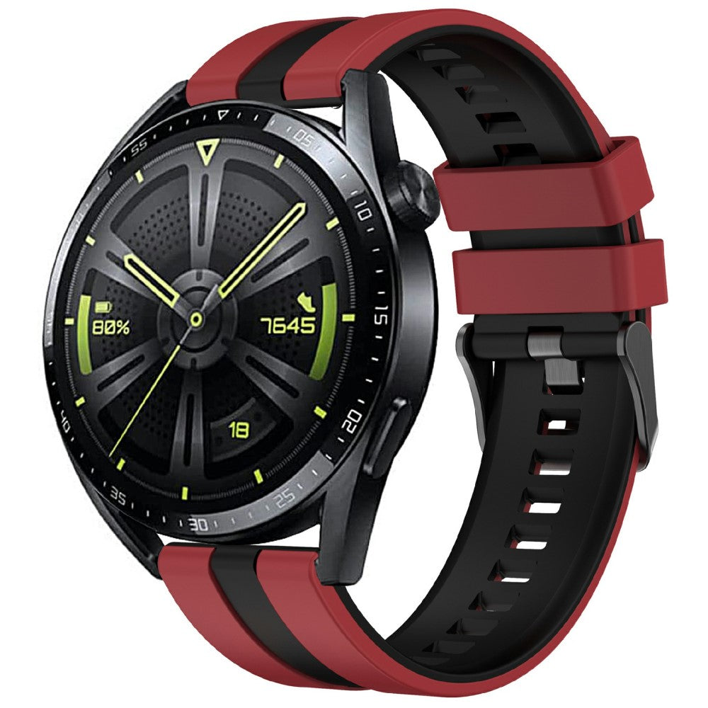 KALEBOL 20mm Silicone Watch Strap Dual Color Wrist Band - Black+Dark Red