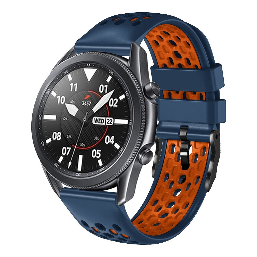 22mm Universal dual color five row hole style silicone watch strap - Dark Blue / Orange