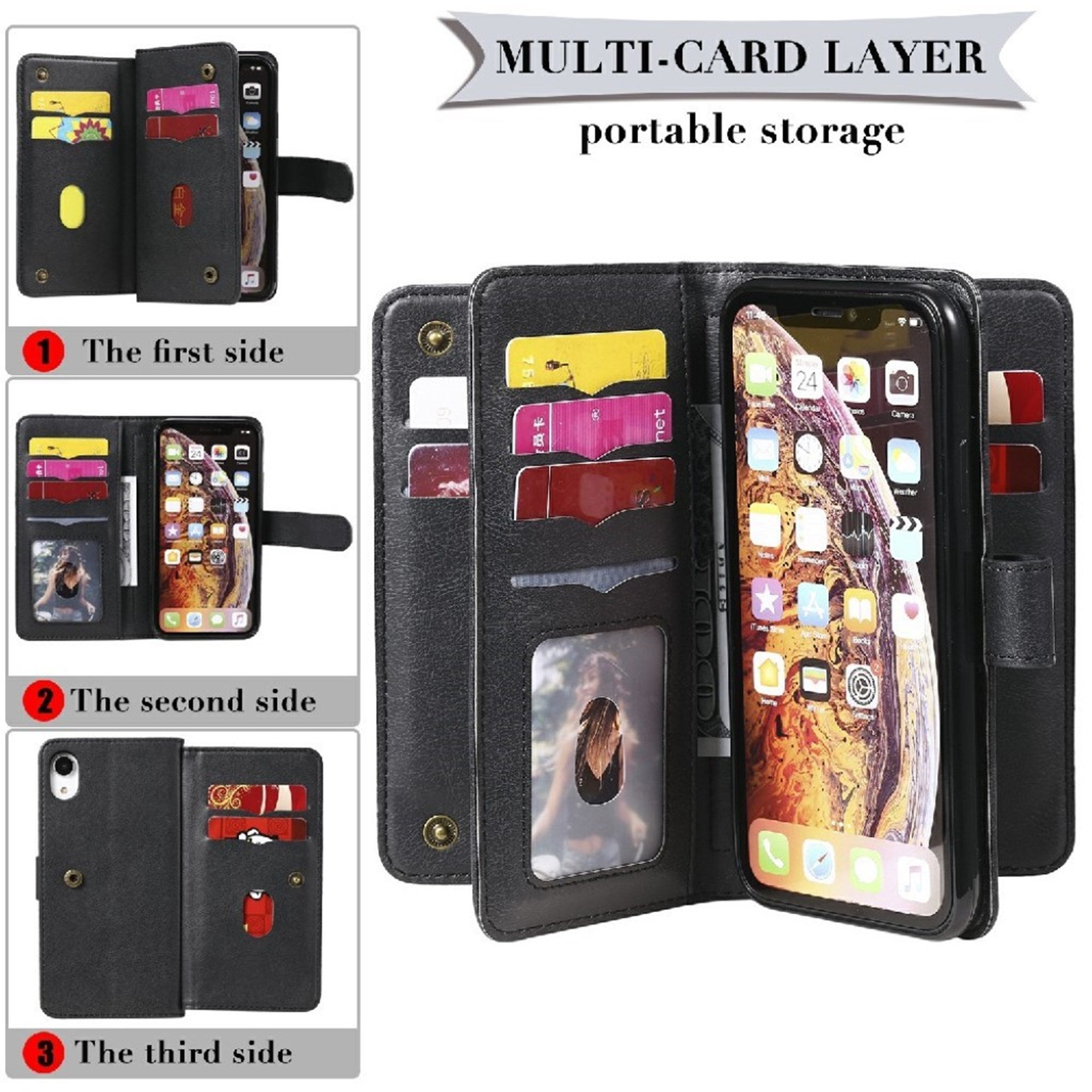 This spacy wallet case is made of a soft artificial leather, and offers a whole 10 slots for cards, and an additional slot for cash! Aside from its spacy interior and great protection for your iPhone Xr, it also has a two-sided magnetic strap, securing the wallet. It can be folded, allowing the case to stand on its own for easy viewing. Perfect for those who wish to not carry the phone, a cover and a wallet - have it all in one!