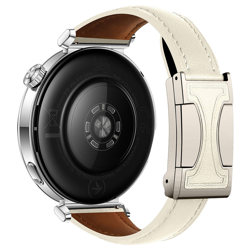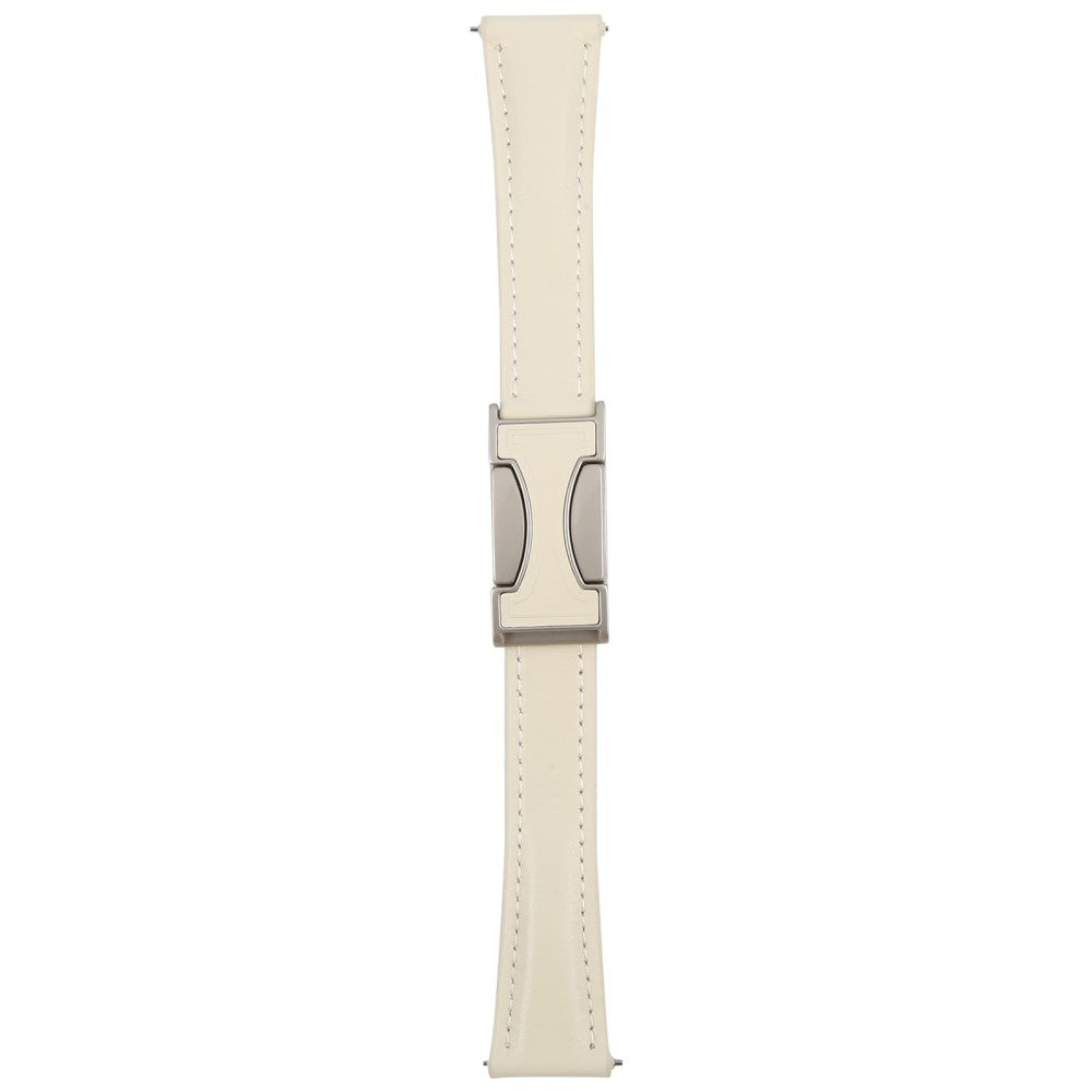 20mm Genuine Cow Leather Strap Samsung Galaxy Watch7 44mm / 40mm / Huawei Watch GT 3 42mm Flat Texture Magnetic Watch Band - Beige