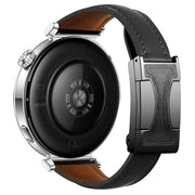 20mm Genuine Cow Leather Strap Samsung Galaxy Watch7 44mm / 40mm / Huawei Watch GT 3 42mm Flat Texture Magnetic Watch Band - Black