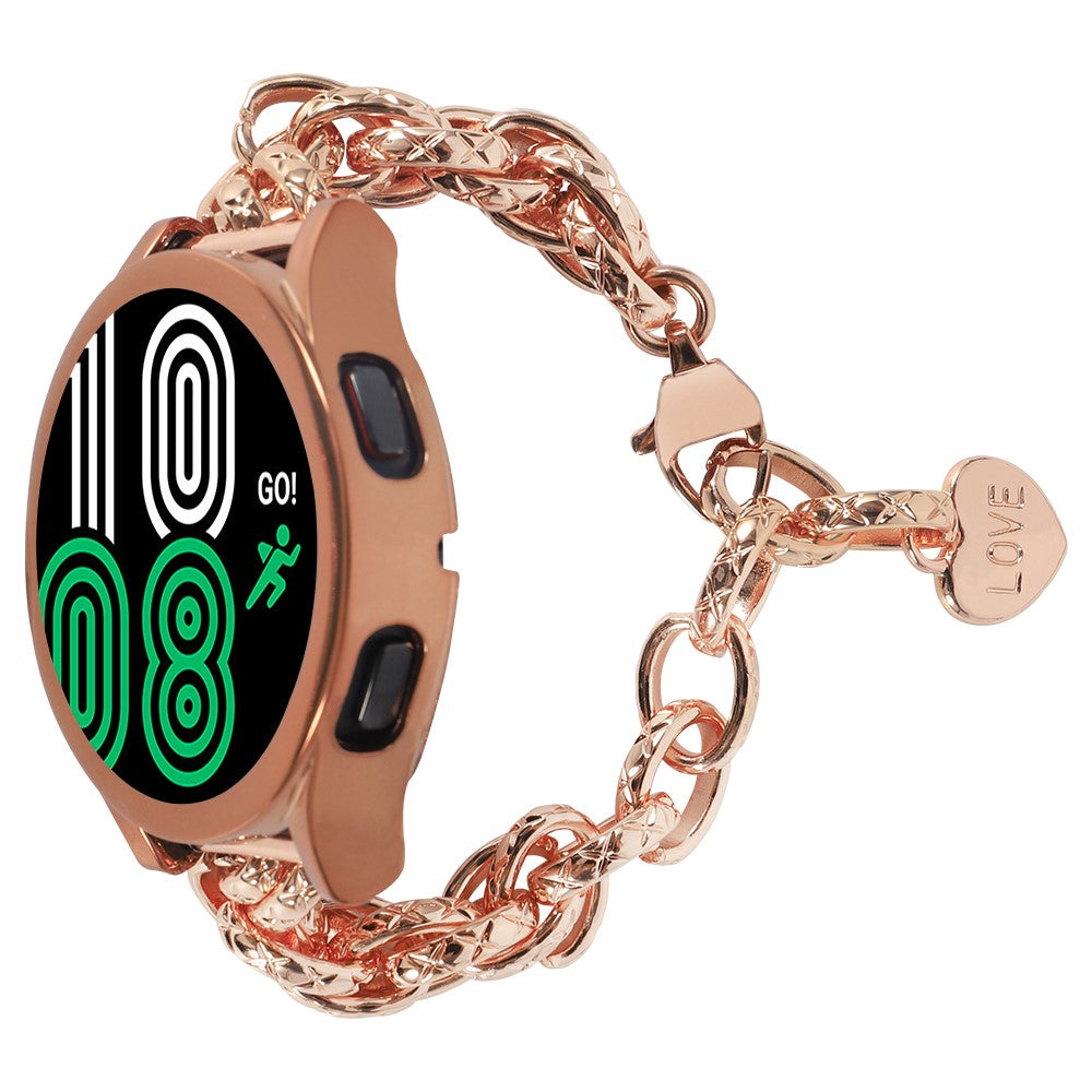 For Huawei Watch GT3 42mm/Samsung Galaxy Watch 4/4 Classic 20mm Replacement Bracelet Stainless Steel Watch Band with Heart Pendant - Rose Gold