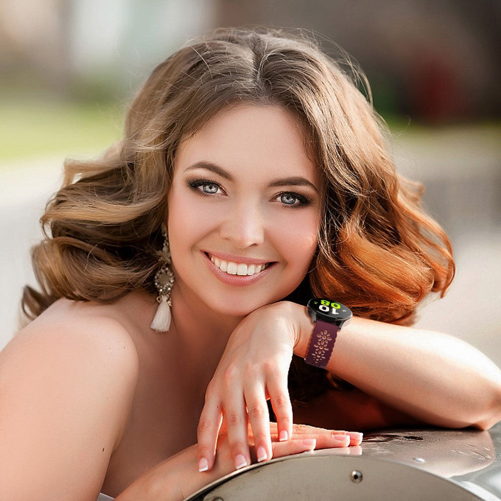 For Garmin Vivomove 3S / Samsung Gear Sport / Huawei Watch GT 2 42mm Silicone Watchband 20mm Flower Hollow Dual Color Watch Strap - Wine Red / Pink