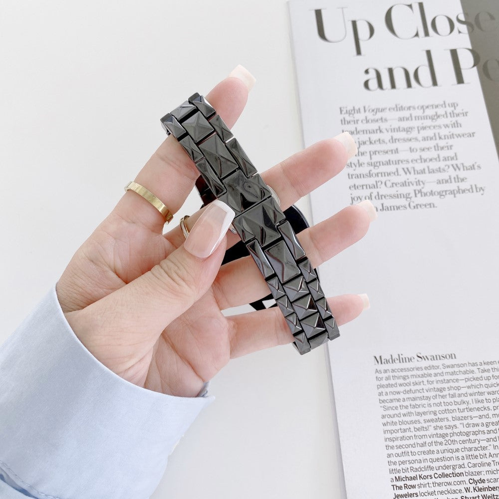 For Huawei Watch GT 3 42mm/Samsung Galaxy Watch4/Watch4 Classic 46mm/42mm Rhombus Grid Design Ceramic Watch Strap Wrist Band 20mm - Black
