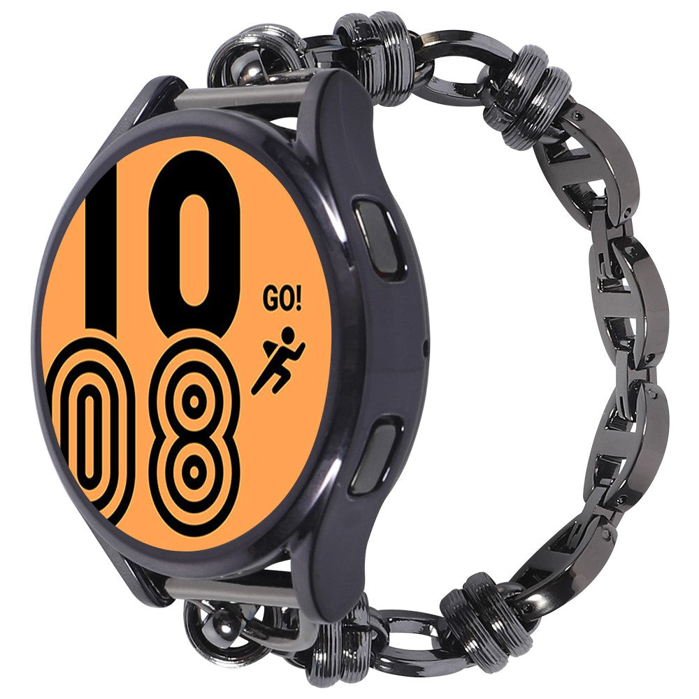 For Huawei Watch GT3 42mm/Samsung Galaxy Watch 4/4 Classic 20mm Universal Threaded Metal Chain Strap Replacement Watchband - Black