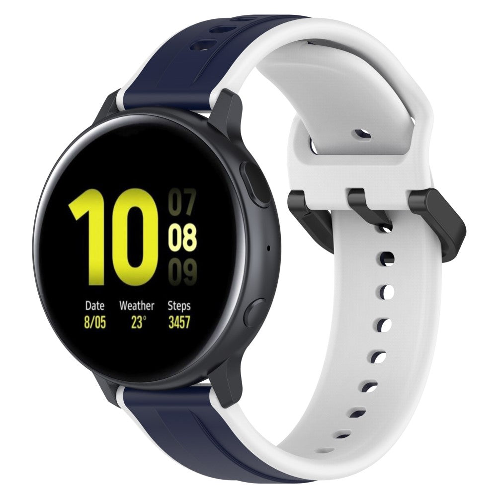 For Samsung Galaxy Watch Active2 44mm 40mm Sport Bands Dual Color 20mm Silicone Replacement Strap - Midnight Blue / White