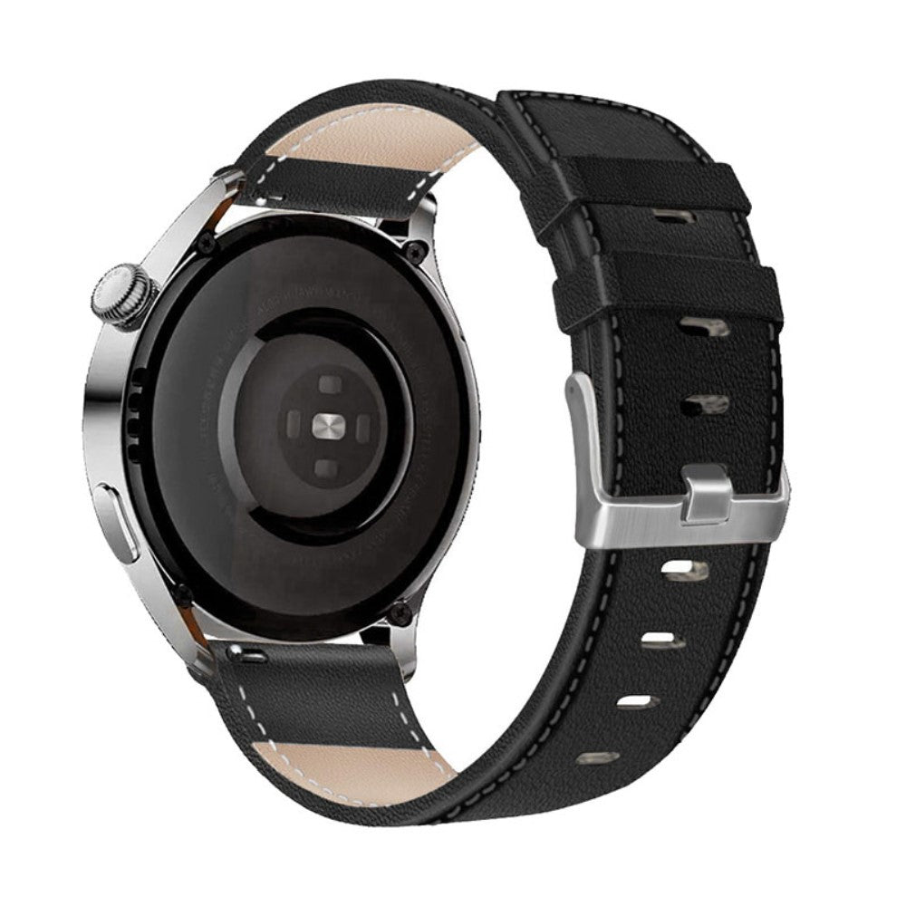 For HUAWEI Watch GT3/Samsung Galaxy Watch 46mm/Gear S3 Classic Leather Watch Band 22mm Universal Watch Strap with Buckle - Black