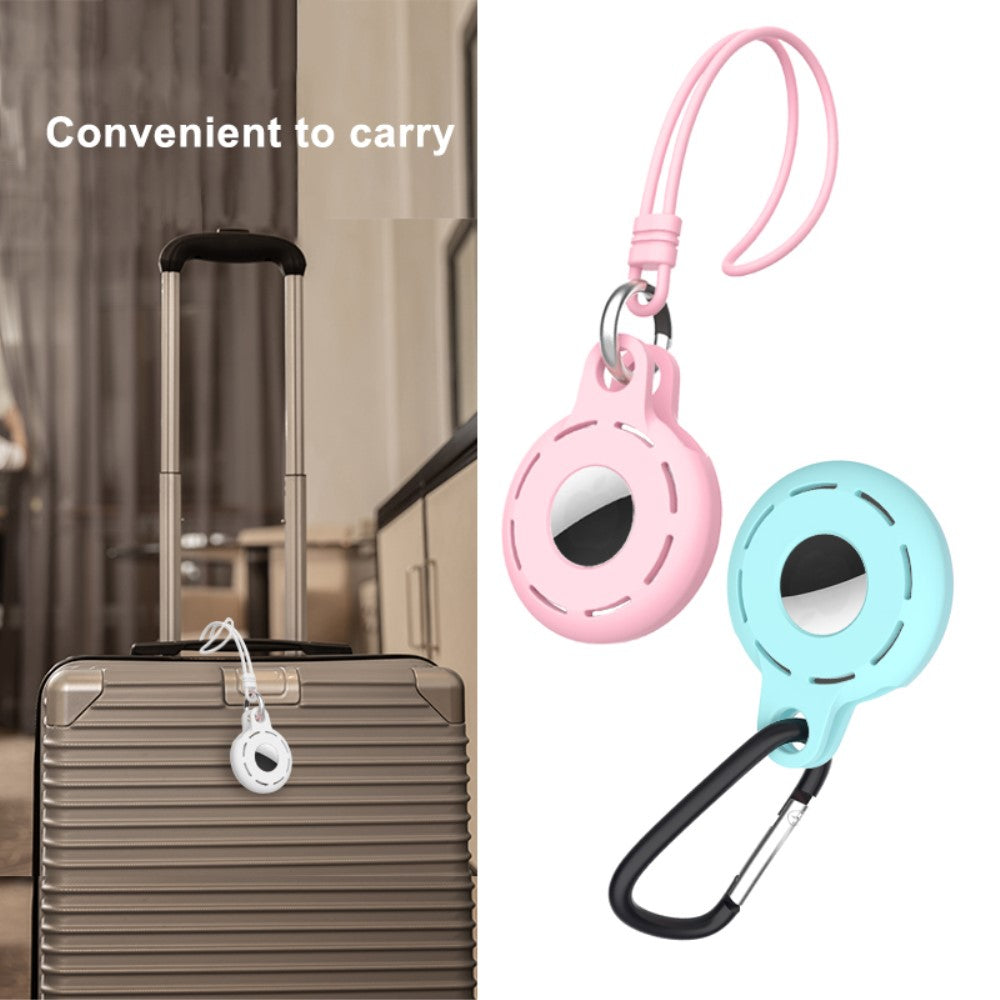 4Pcs AirTags protective cover with strap and carabiner - Wine Red / Luminous Yellow / Luminous Pink / Mint Green