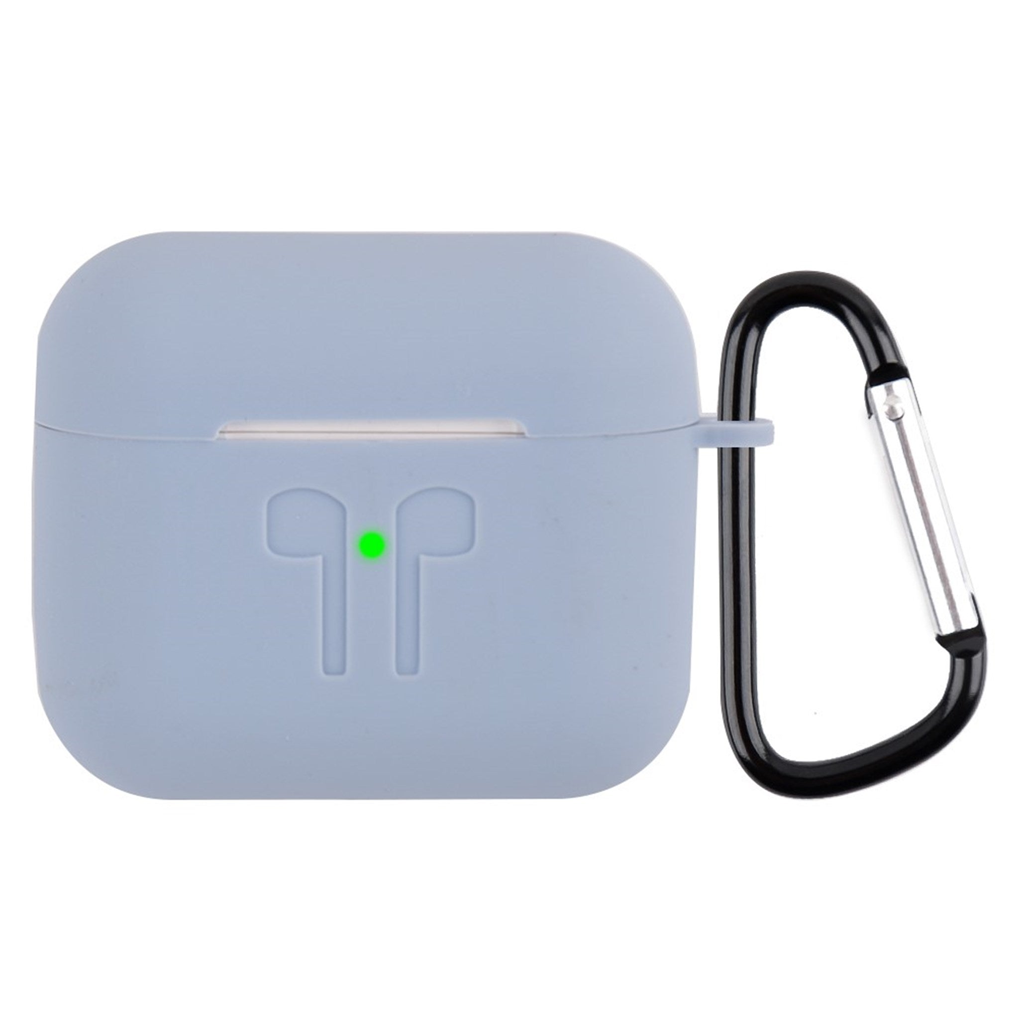 Earphone Shape Engraved Solid Color Earbud Silicone Protective Case Cover with Carabiner for Apple AirPods 3 - Grey