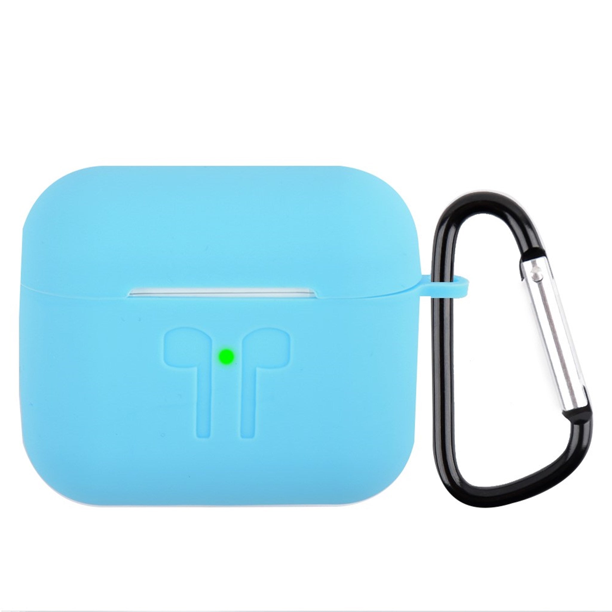 Earphone Shape Engraved Solid Color Earbud Silicone Protective Case Cover with Carabiner for Apple AirPods 3 - Sky Blue