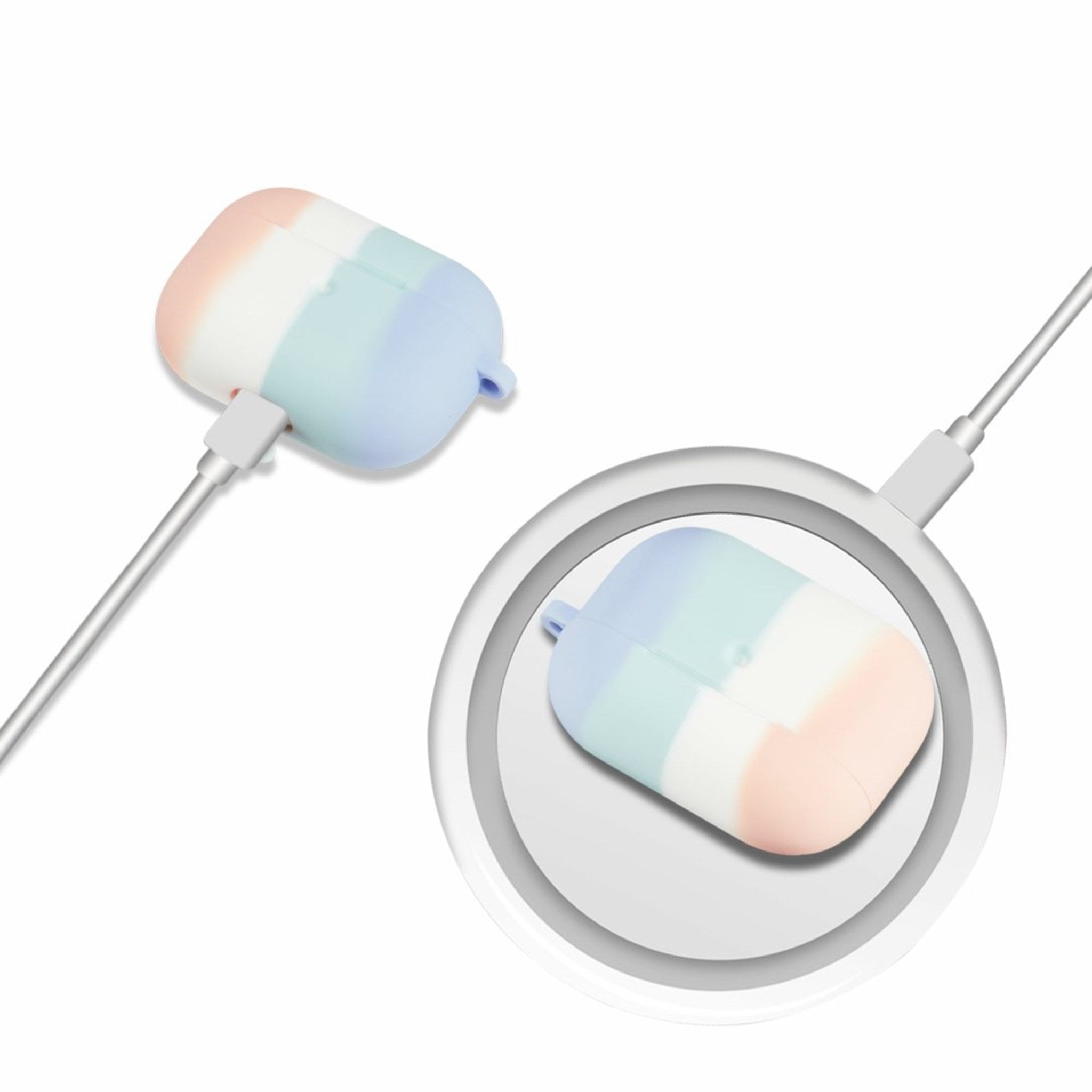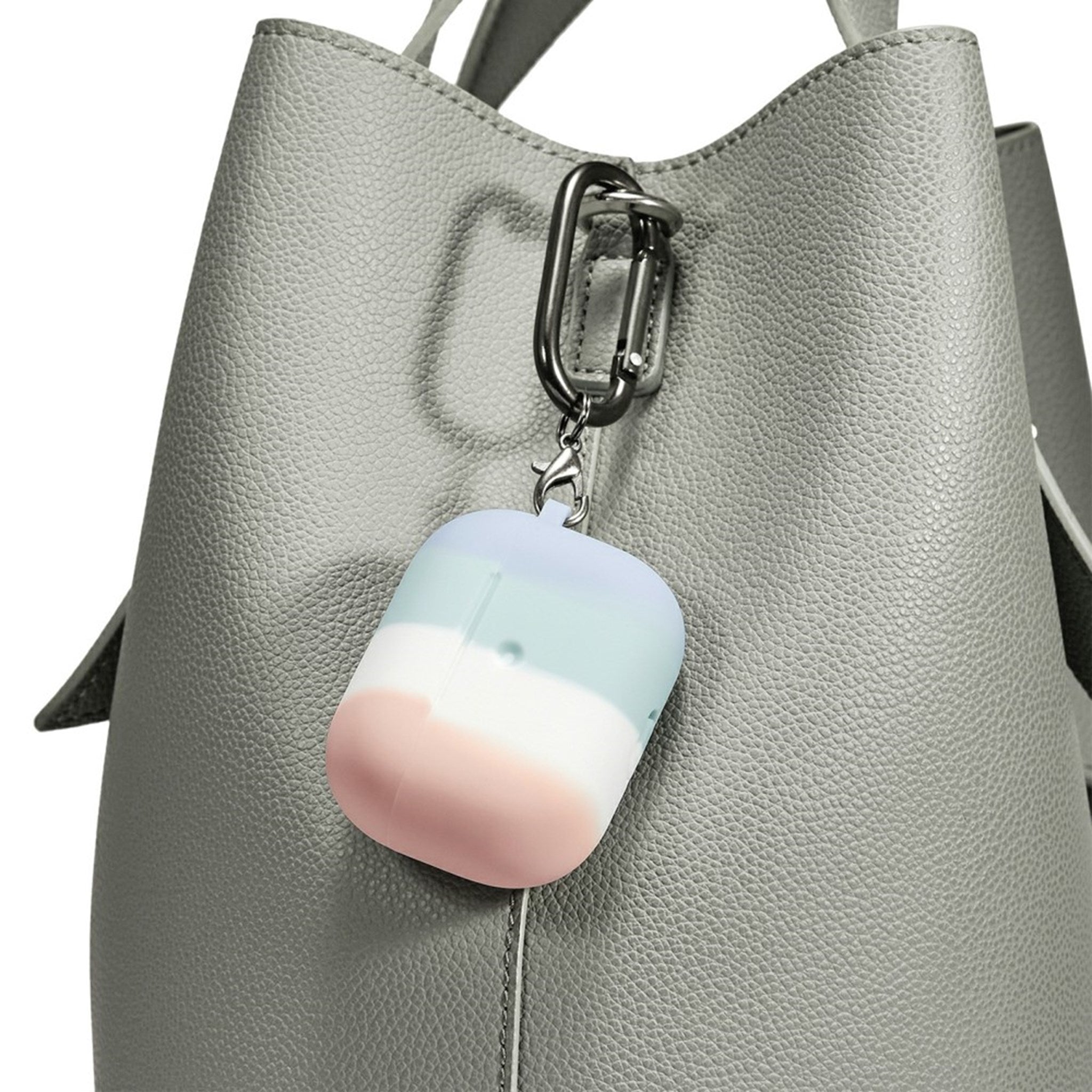 Rainbow Soft Silicone Earphone Protective Case Shell with Carabiner for Airpods 3 - Pink / Blue